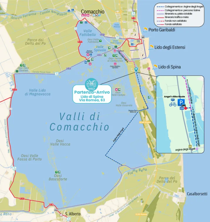 Angel's Bike Route si trova a Lido di Spina in Via Romea 63 a soli 5 minuti dall'ingresso del percorso "Argine degli Angeli".